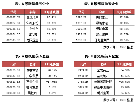 04. 股價變動:A股近80%地產(chǎn)股整月上漲,H股地產(chǎn)股表現(xiàn)較為一般