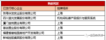 3、已發(fā)行購(gòu)房尾款的核心企業(yè)