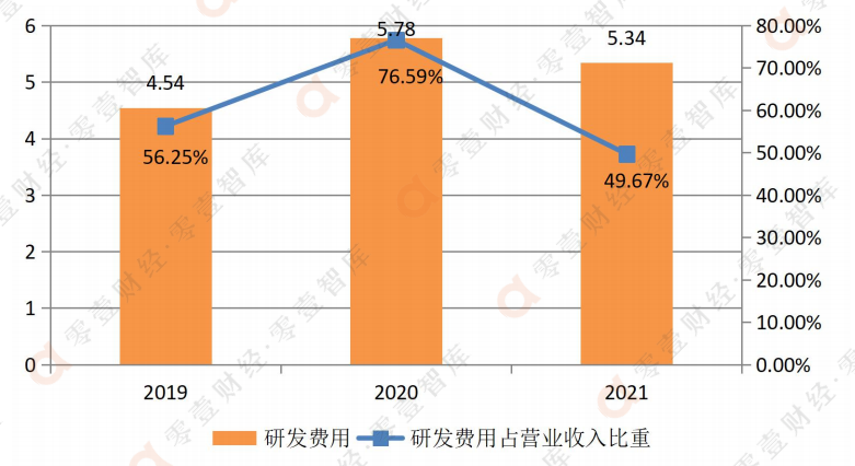 云從科技展現了高科技企業高研發投入的典型特征。2019年至2021年,云從科技的研發費用分別為4.54億元、5.78億元和5.34億元,占各期營業收入的比例分別為56.25%、76.59%和49.67%。2021年研發費用同比略有減少,云從科技財務總監兼董秘李勝剛表示:“高研發投入是公司持續保持技術領先的重要支撐,未來公司仍將持續加大研發投入,加強技術研發和創新,提升公司競爭力”。