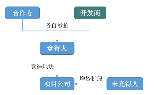 聯合體競拍:競拍成功后,即由聯合體各方合資設立項目公司,以合資項目公司的名義與土地出讓部門簽訂出讓合同。