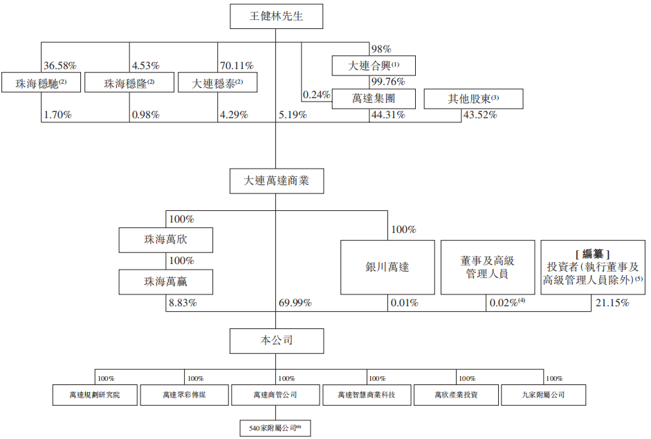 在控股方面,大連萬(wàn)達(dá)商業(yè)、珠海萬(wàn)贏、銀川萬(wàn)達(dá)分別直接持股69.99%、8.83%、0.01%,其余投資者持股21.17%。