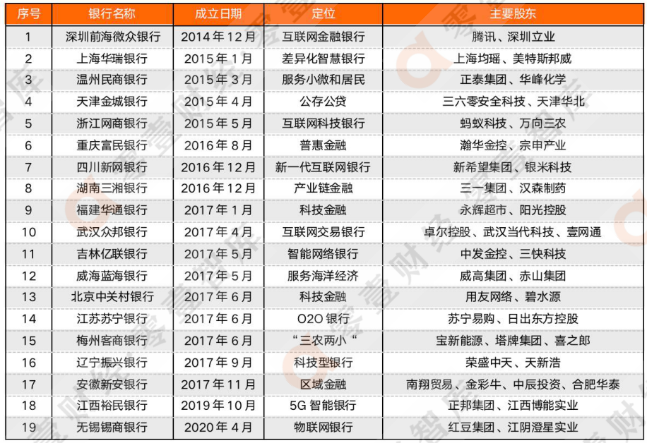 民營銀行在發展中陣容也得到了進一步擴大,截至2021年11月30日共有19家民營銀行獲批開業。