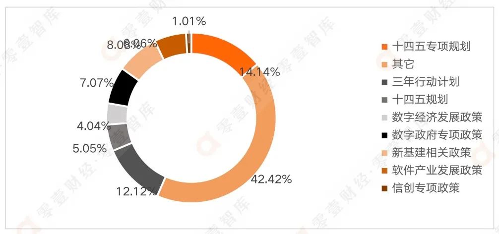 在99部信創政策中,含有“十四五專項規劃”詞條的政策數量占比為14.14%,“十四五規劃 ”占比為5.05%。自“十四五”規劃發布的短短一年內,全國共發布了19部與信創相關“十四五”規劃和“十四五”專項規劃。2021年是“十四五”的開局之年,亦是我國全面建成小康社會并乘勢而上開啟全面建設社會主義現代化國家新征程的第一年。在這樣一個承上啟下的關鍵一年里,我國及各地方政府將信創放在了“十四五規劃”的重要位置,可見信創在國家發展戰略中的地位,由此可以預見,“十四五”將帶領著信創在新征程中不斷發展。