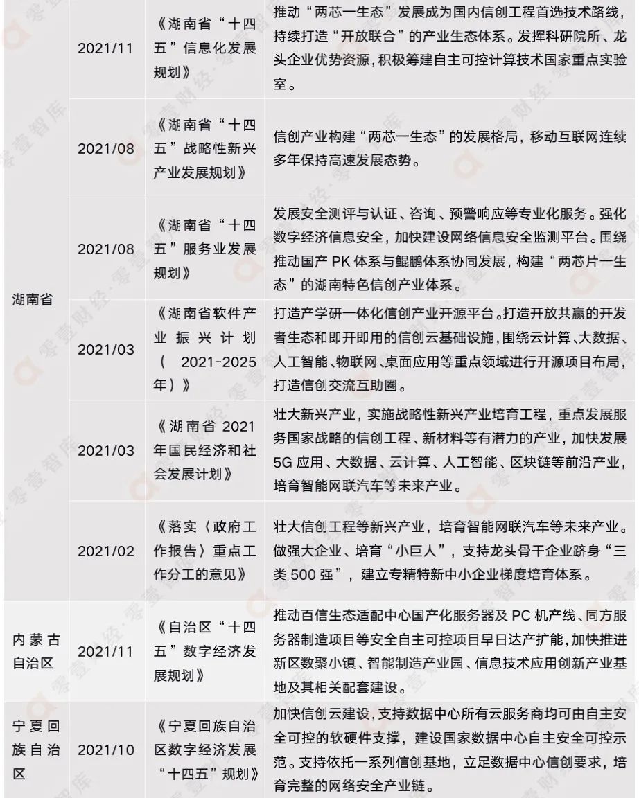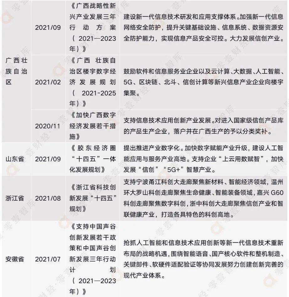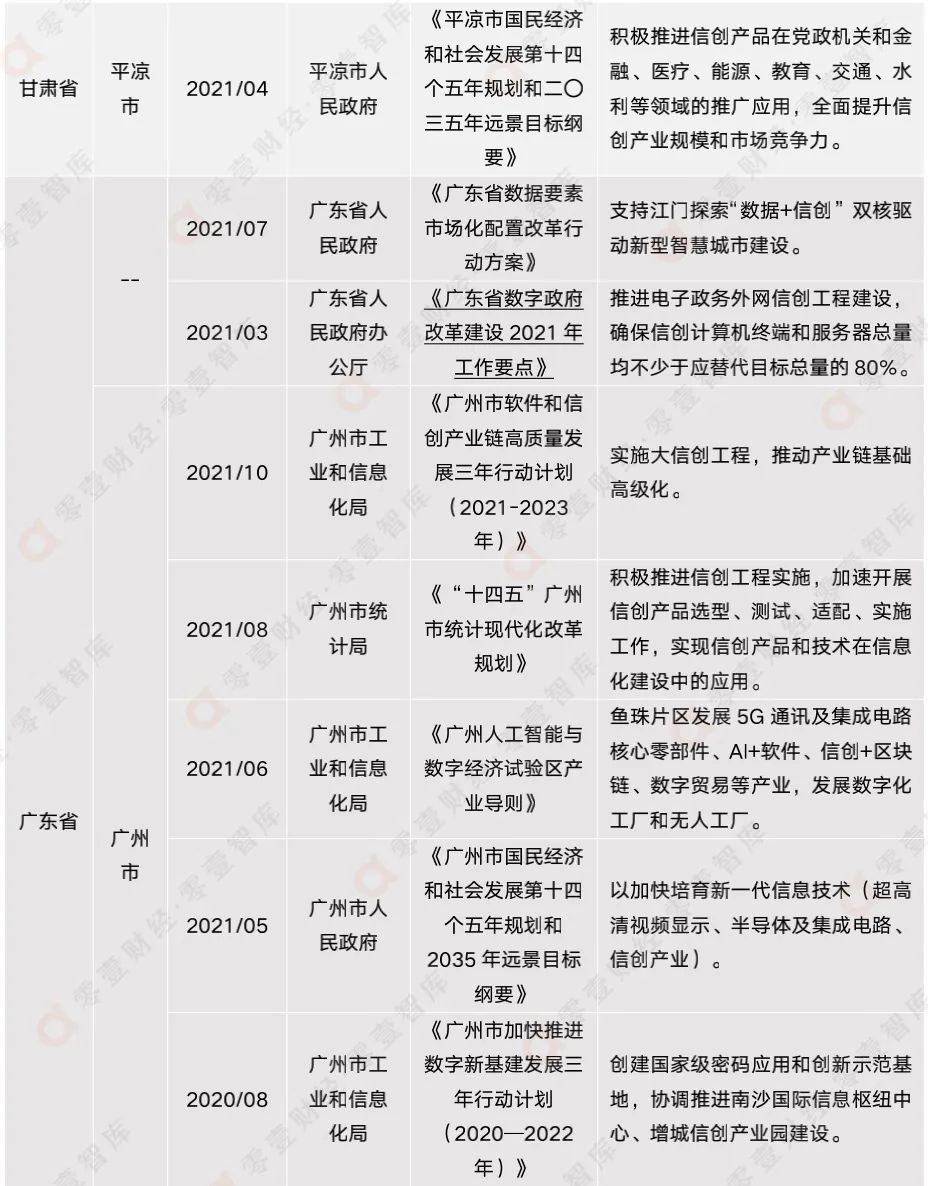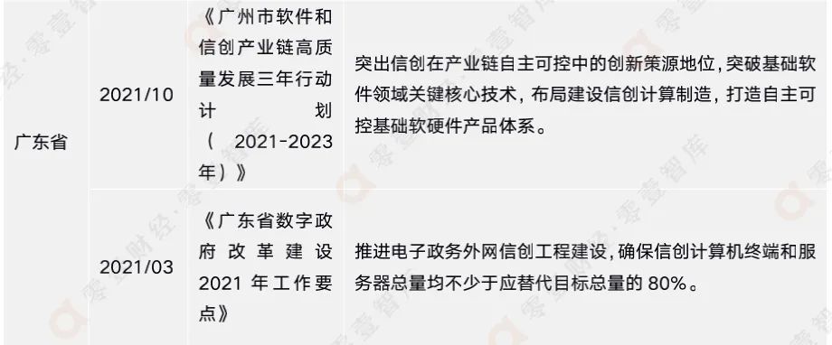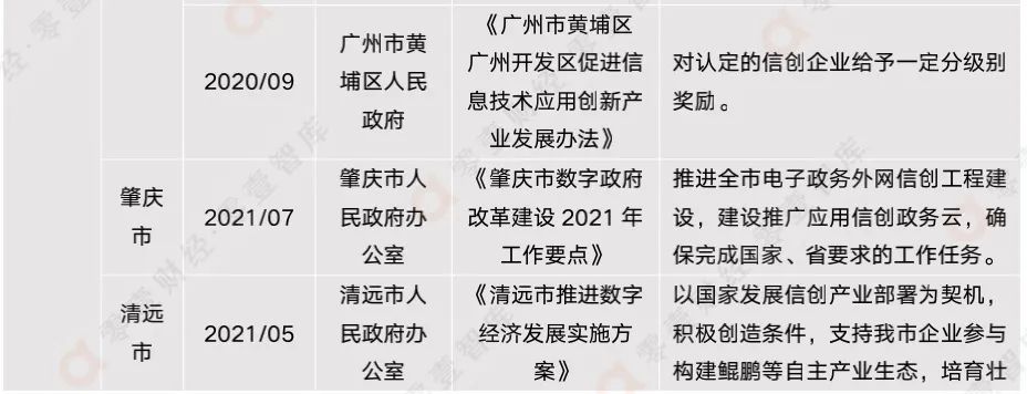 雖然信創產業如今大熱,但鮮有政府出臺信創專項政策,目前僅有廣州市工業和信息化局出臺的《廣州市軟件和信創產業鏈高質量發展三年行動計劃(2021-2023年)》。信創產業的發展并不久遠,相信隨著信創的進一步發展,其重要性會更加凸現,政府的關注度和重視程度也會大幅提高。