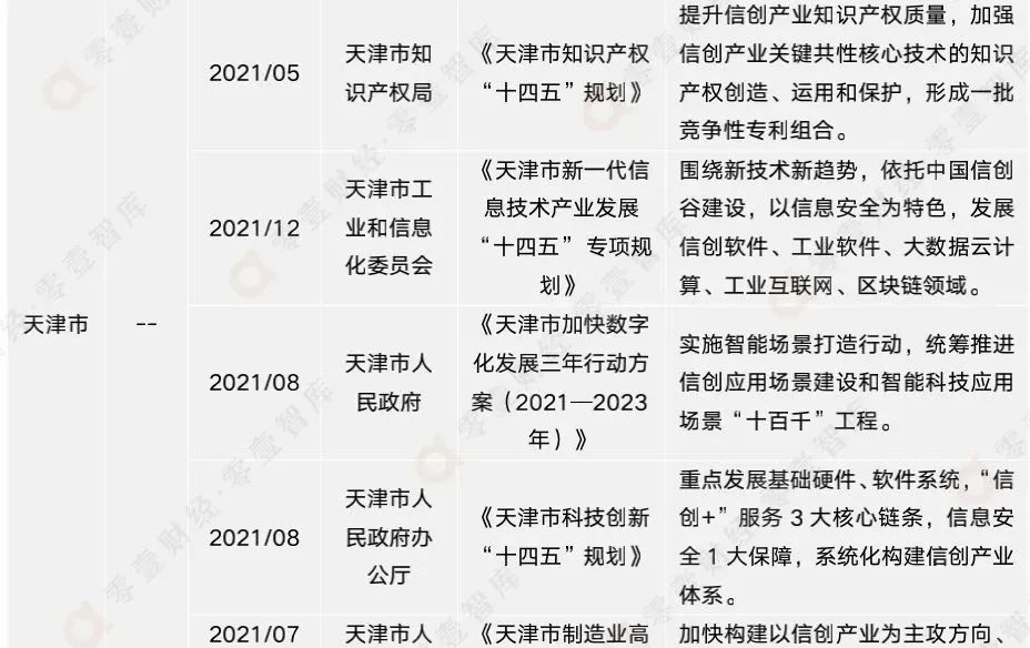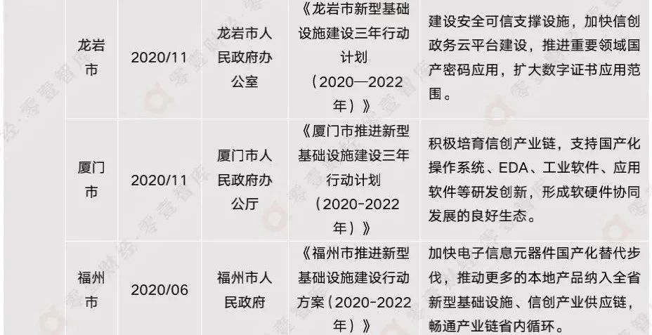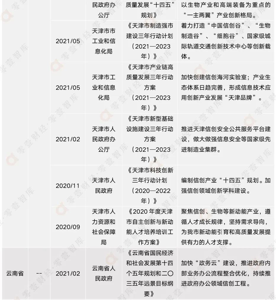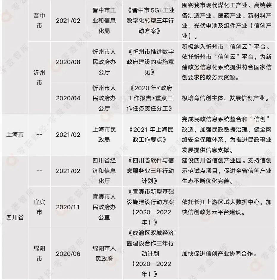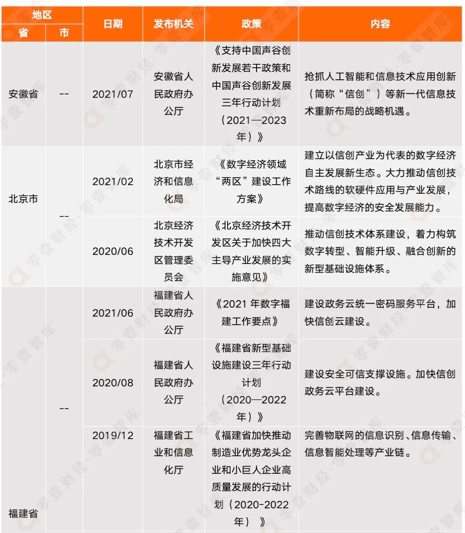 附錄二:全國各省市信創相關政策匯總(截至2021年12月)