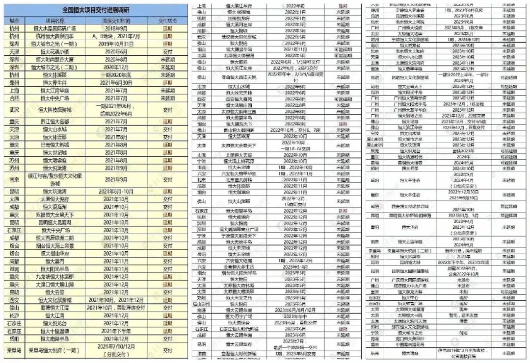 因為房地產(chǎn)行業(yè)的預售制,恒大的樓盤項目交付多集中在2022-2024年期間,此外有39個樓盤項目交付時間在2021年年底之前。