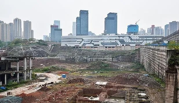 重慶的溉瀾溪,一個因為被劃入重慶江北嘴CBD而身價倍增的老鎮(zhèn)。巨大的土坑在老鎮(zhèn)中央。坑里地面上四層,地下兩層,但只建了一半,全是空架子,與周邊高高的居民樓格格不入。