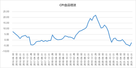 而CPI食品類增速在9月創(chuàng)出-5.2%的階段新低后,10月出現(xiàn)了反彈。豬肉價(jià)格下跌拖累了CPI食品項(xiàng)。同樣,近期豬肉價(jià)格的反彈也帶動(dòng)了10月食品項(xiàng)回暖。