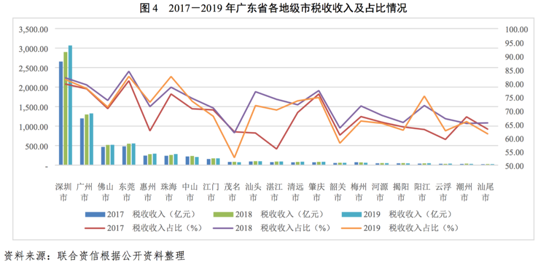 3.廣東省各地級市財政收入對發債城投企業債務的支持保障能力