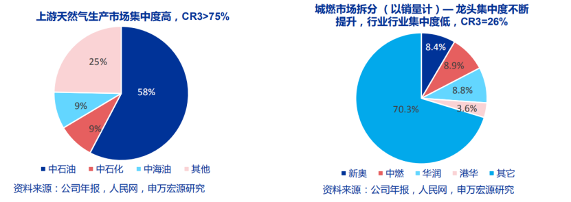 而在下游一端的格局,特許經營權保護下,城燃劃城而治,行業集中度低,終端售價由當地物價局制定。