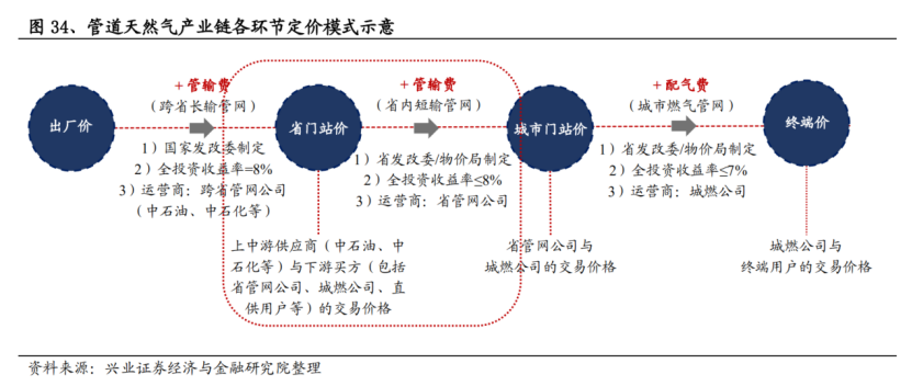 在鏈條中游:跨省管網主要由國家管網運營,省際管網由地方能源國企運營,輸氣價格受政府監管。