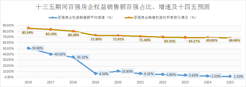 • 參考十三五期間百強房企權益銷售額增速的下降,預計十四五期間權益銷售額繼續呈現下降趨勢;