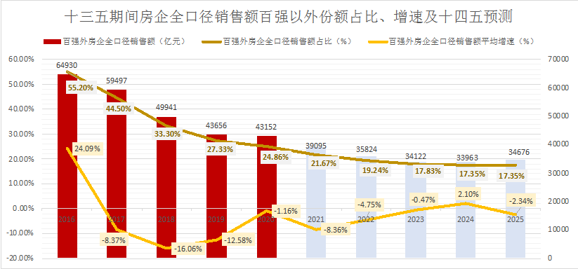 • 十四五期間百強外房企銷售額市場份額仍將繼續下降;