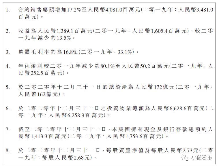 在毛利方面,2020年金輪天地控股的整體毛利率為16.8%,較2019年的33.1%大幅下滑,其中房地產(chǎn)開發(fā)業(yè)務(wù)毛利率為3.7%,主要由于湖南株洲交付了一個零利潤項目。