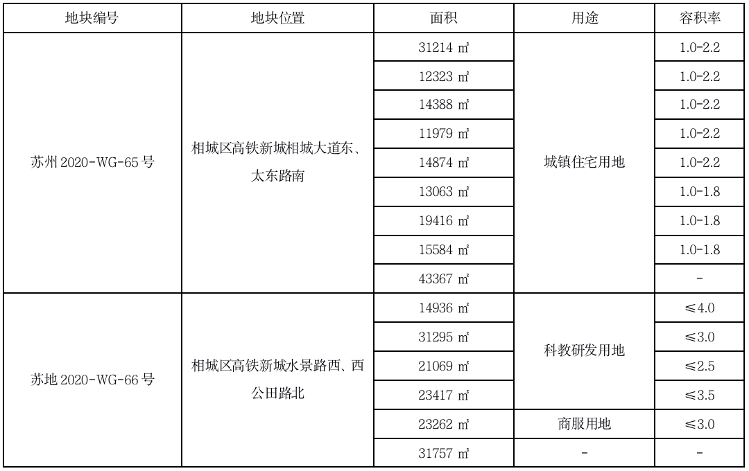 數據來源:蘇州相城區國有建設用地使用權出讓公告