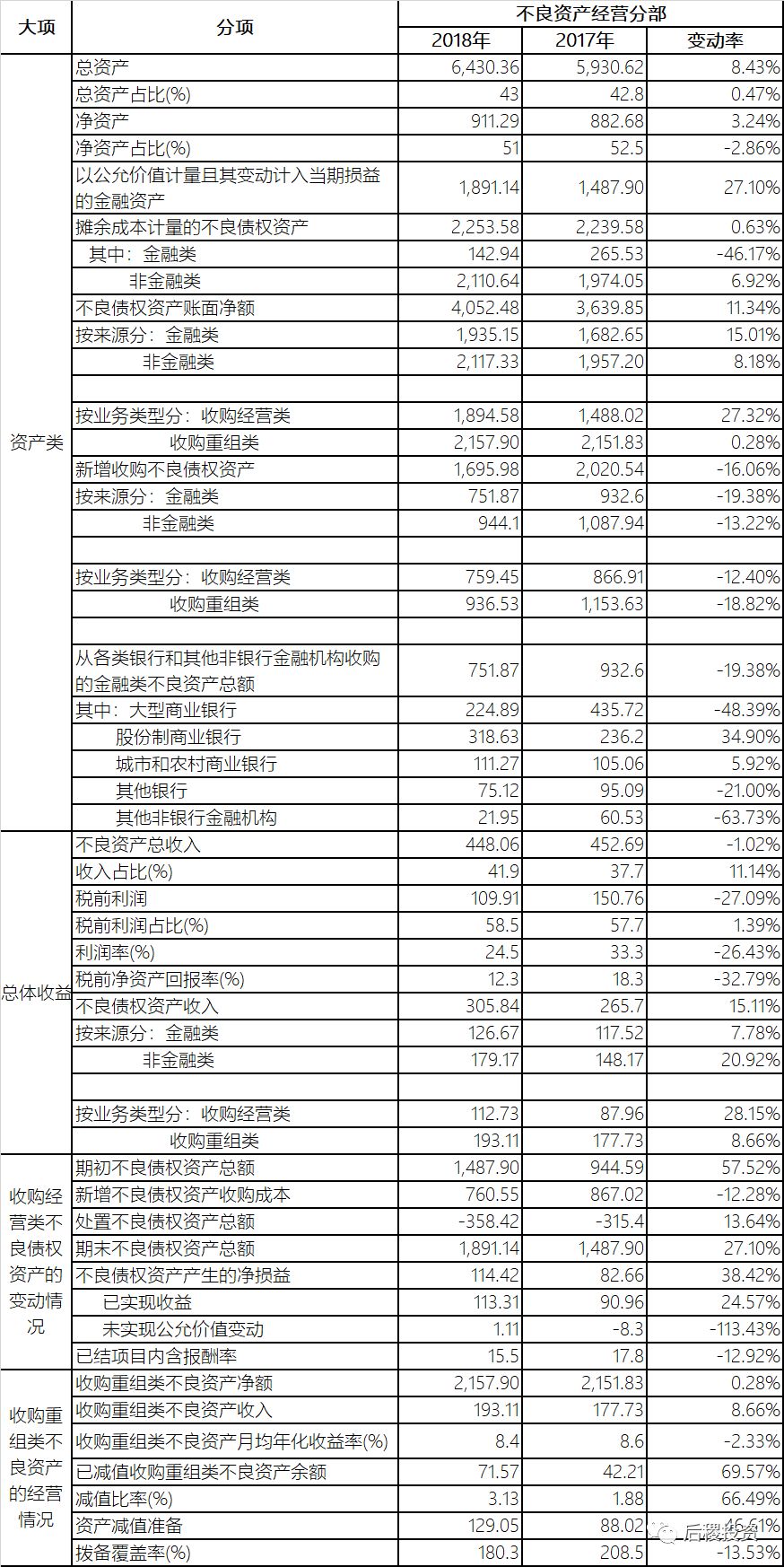 b  新增不良債權資產收購成本1695.98億,較2017年相比,下降16.06%,其中金融類下降19.38%。