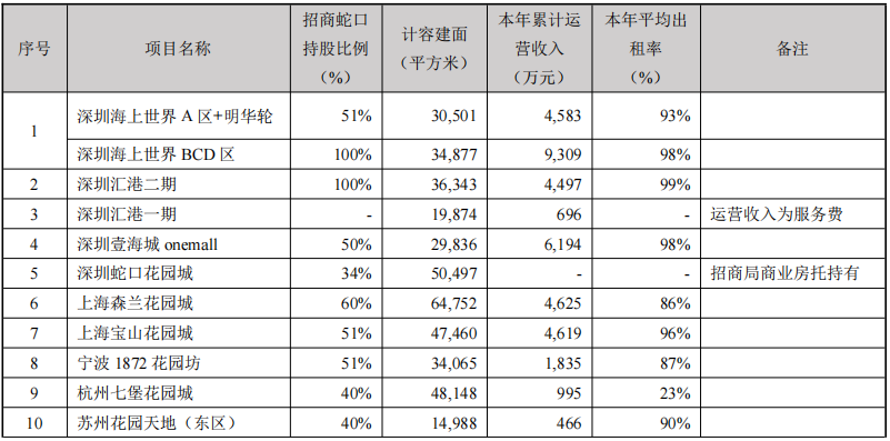報(bào)告期間內(nèi),招商蛇口擁有可出租土地面積 139.84萬(wàn)平米,出租率98%,報(bào)告期出租收入 1.00億。