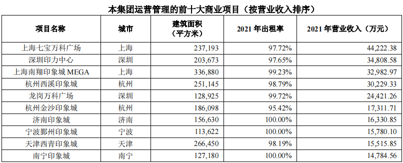 公司主要運(yùn)營(yíng)管理的集中商業(yè)項(xiàng)目: