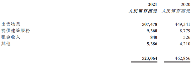 營(yíng)業(yè)收入中,來(lái)自房地產(chǎn)開(kāi)發(fā)及相關(guān)資產(chǎn)經(jīng)營(yíng)業(yè)務(wù)的營(yíng)業(yè)收入為4,299.3億元;來(lái)自物業(yè)服務(wù)的營(yíng)業(yè)收入為198.3億元。