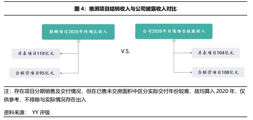 然后,我們通過公開渠道查詢這些項目的交房時間,根據下圖所示邏輯計算2020年確認/結轉的收入,并根據公司對這些項目的持股比例簡單區分是并表收入還是合聯營公司收入。