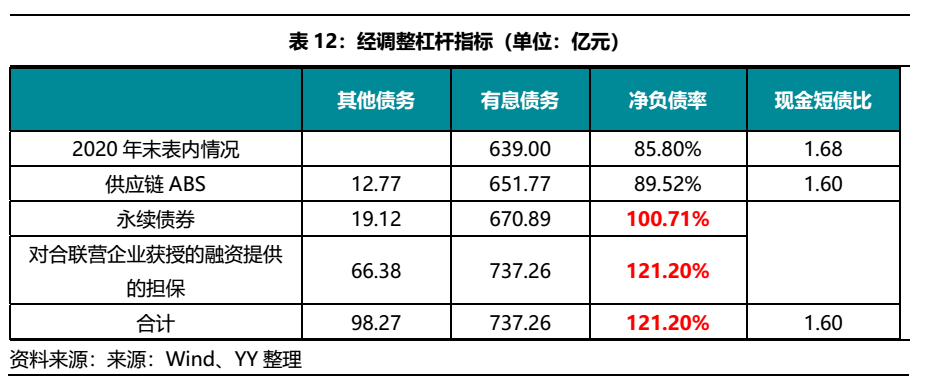 我們將供應鏈ABS由經營性債務調入有息債務,將對合聯營企業獲授的融資提供的擔保作為表外或有債務,并對永續債進行調整,調整后公司凈負債率超過監管指標。