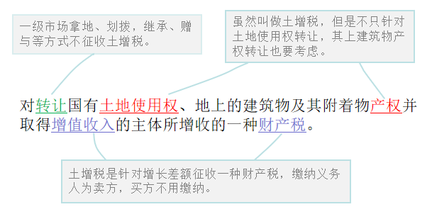 土增稅對“轉讓”國有土地使用權的行為征稅,對“出讓”國有土地使用權的行為不征稅。土地增值稅只對“有償轉讓”的房地產征稅,對以“繼承、贈與”等方式無償轉讓的房地產,不予征稅。