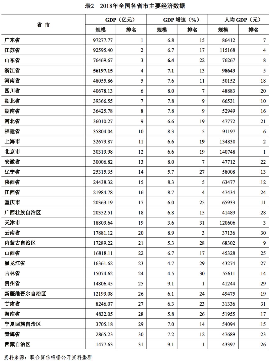 浙江省地處東南沿海,經濟發展處于全國領先水平,GDP及增速連續多年位居全國第四位;產業結構以第三產業為主,民營經濟活躍度較高,固定資產投資增速2018年有所放緩,居民可支配收入及城鎮化率均處于全國較高水平。