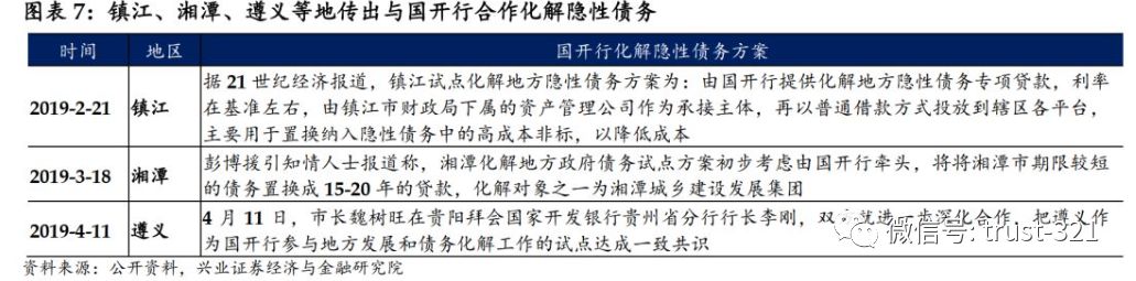 2019年以來(lái),鎮(zhèn)江、湘潭、遵義等地先后傳出了通過(guò)國(guó)開行提供低息貸款置換的方式化解隱性債務(wù)的方案。