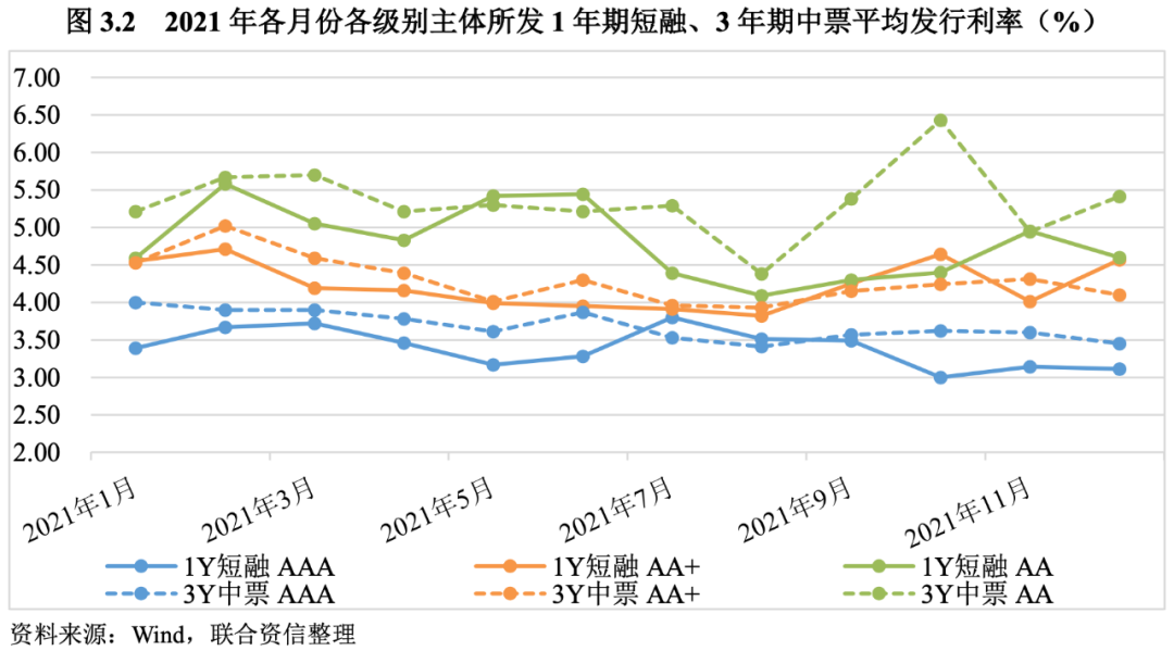違約情況方面,2021年我國債券市場新增違約發行人23家,主要為海航系企業和部分房地產行業企業及其關聯企業,信用風險有序釋放,年度違約率較2020年和2019年有所下降。等級調整方面,公募債券發行人信用等級調整率較2020年和2019年有所下降,整體呈下調趨勢。信用等級遷移方面,樣本數量較多的AA-級及以上級別整體穩定性較好,AA+級至AA-級穩定性有所上升。利差表現方面,信用等級與債券發行利率均值、利差均值基本呈負向關系,主要券種不同信用等級利差間均存在顯著性差異,從這個角度看,信用評級能夠較好反映發行人信用風險差異。
