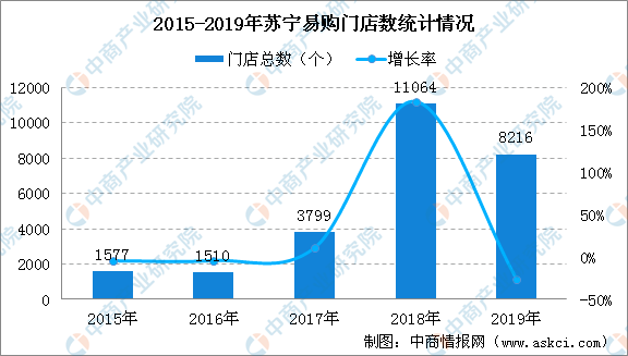 馬云的“新零售”原本計(jì)劃帶飛蘇寧的“智慧零售”。在合作后,蘇寧也的確一度將門(mén)店數(shù)量擴(kuò)增了300%,兩年間新開(kāi)了9554家線(xiàn)下店。