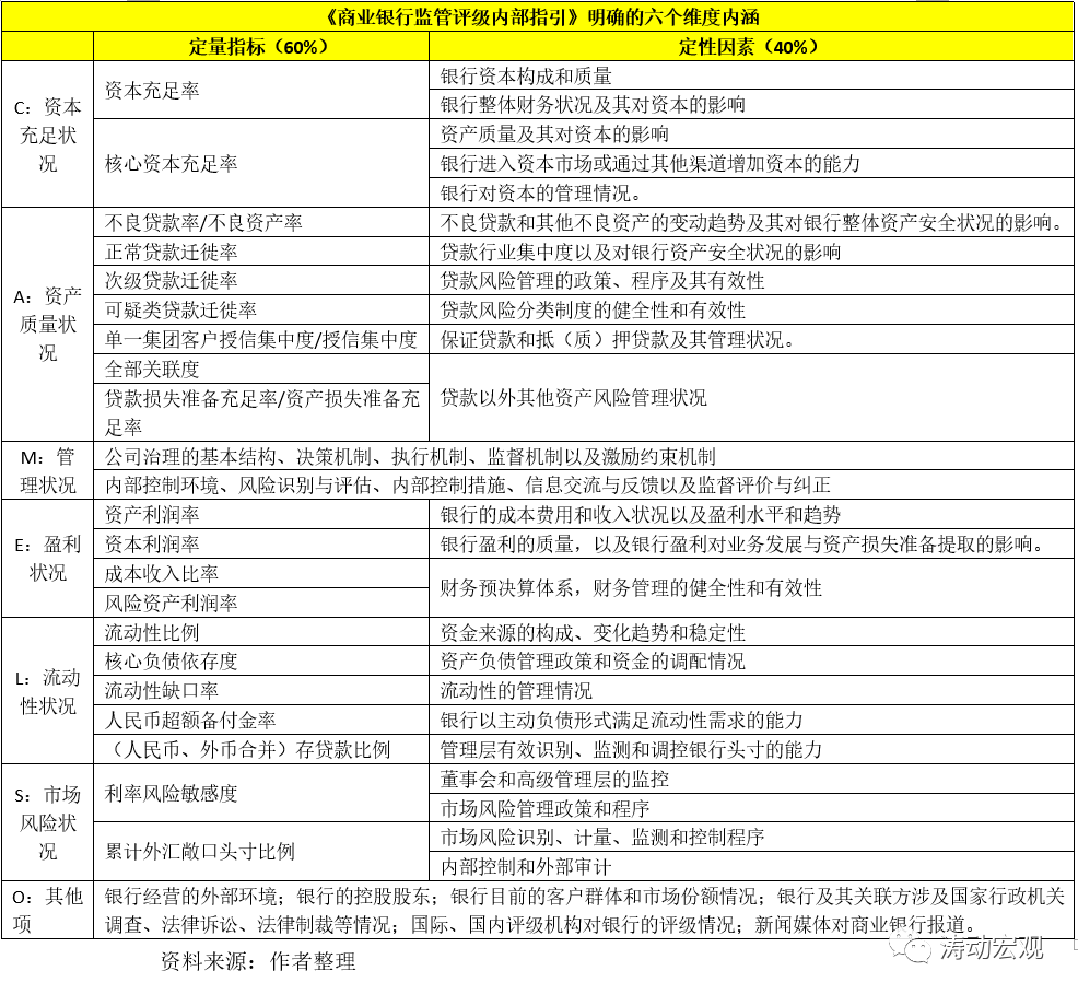 1、監管評級:依據《商業銀行監管評級辦法》
