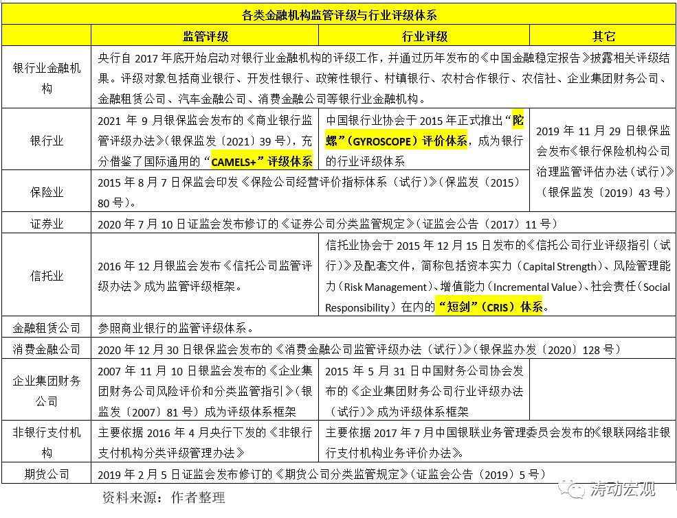 各類金融機構監管評級體系大全(2021年版)