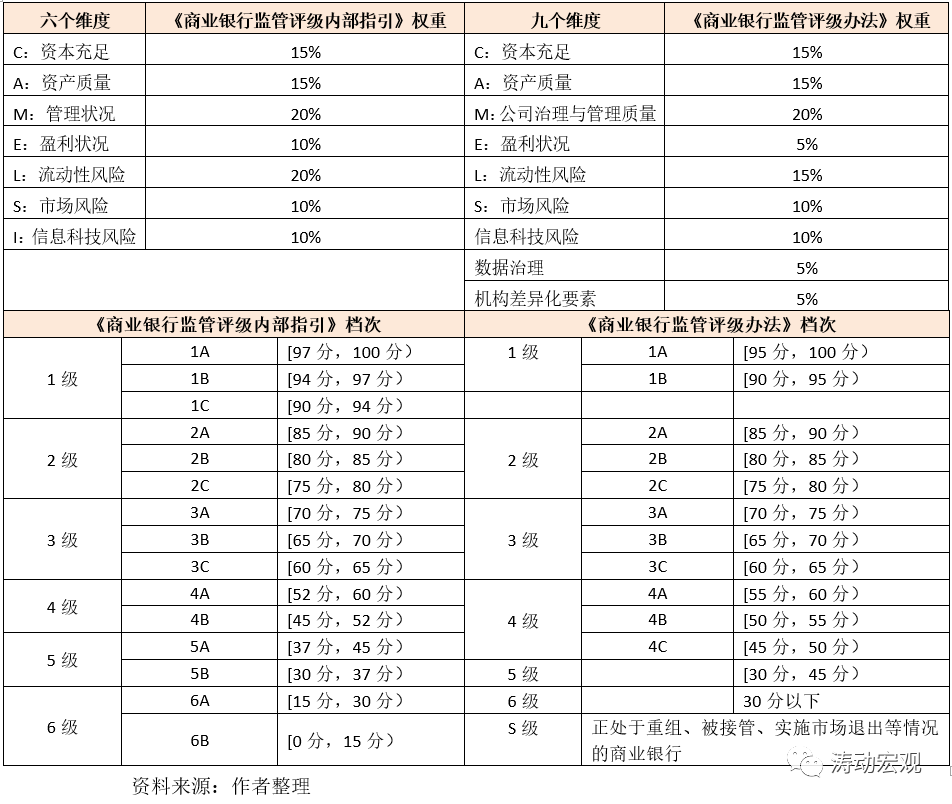 1、監管評級:依據《監管評級辦法》和《監管評級評分操作表》