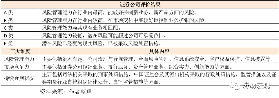 2、證監會主要根據2020年7月10日發布的《證券公司分類監管規定》(證監會公告〔2020〕42號)進行評價。這一文件最早于2009年5月26日發布,并分別于2010年5月14日、2017年7月6日以及2020年7月10日三次修訂。證券公司的分類評價標準以風險管理能力為基礎,主要依據《證券公司風險管理能力評價指標與標準》。可以說證券公司的分類評價體系是證監會體系下各機構評價的主要基準,諸如期貨公司等其它金融機構的評價體系亦主要參考證券公司。