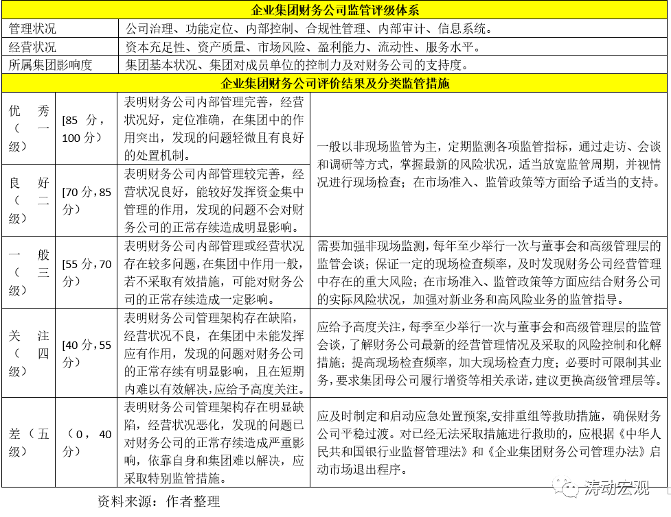 這里我們討論企業集團財務公司的監管評級,監管評級主要基于管理狀況、經營狀況和所屬集團影響度等三個維度。