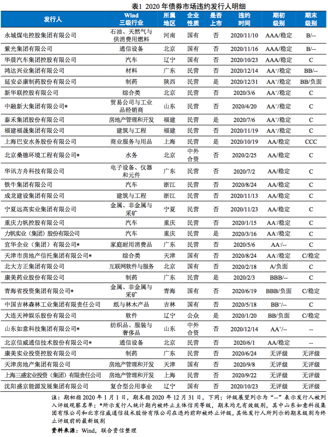 本文從違約情況、等級調整與等級遷移、利差表現三方面對2020年我國債券市場評級表現進行分析并對評級質量進行檢驗。