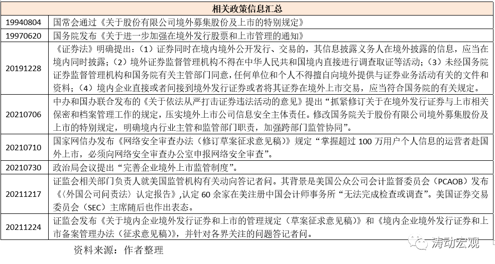 (一)近期隨著中美在資本市場的角逐、美股市場對極致信息披露的要求、美國對中概股的歧視性監管以及中國對國家安全的考慮,境內企業在海外上市引起一定程度熱議甚至非議,部分擬赴美上市公司暫停了上市進程,部分企業則選擇了港股二次上市。同時企業、中介機構、境內外投資者等市場主體亦都十分關注境外上市監管制度。比較有代表性的兩個事件如下: