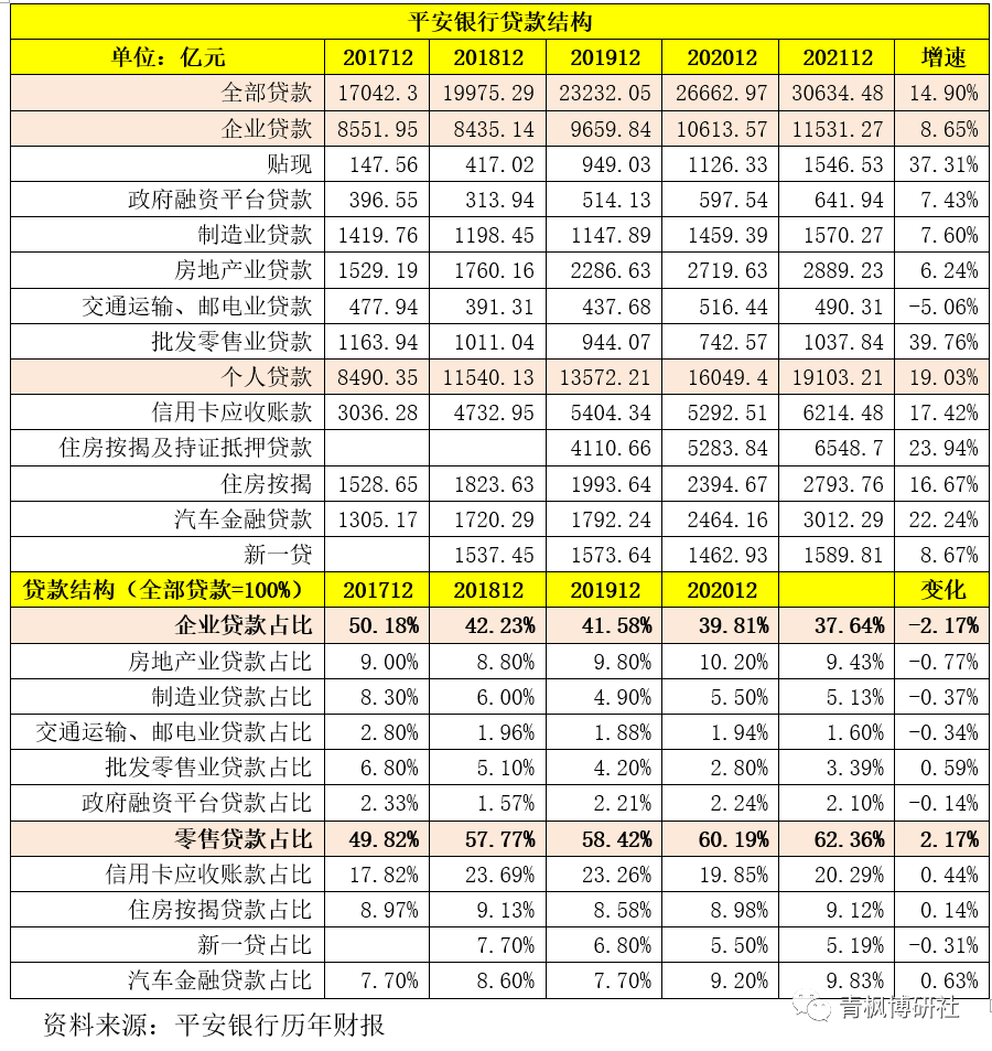 平安銀行背靠的平安集團一直是被稱為地產企業的二股東,平安銀行在房地產領域實際上也有一定深耕。截至2021年底,