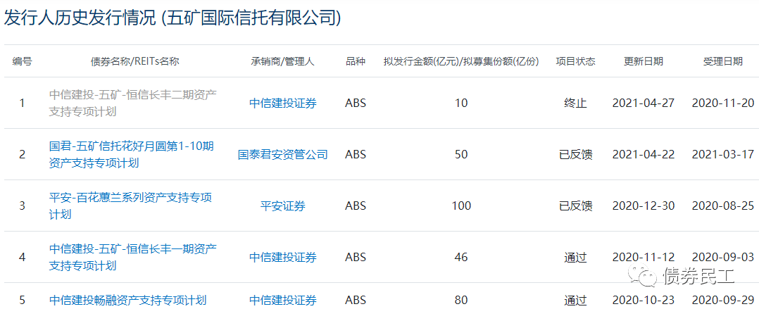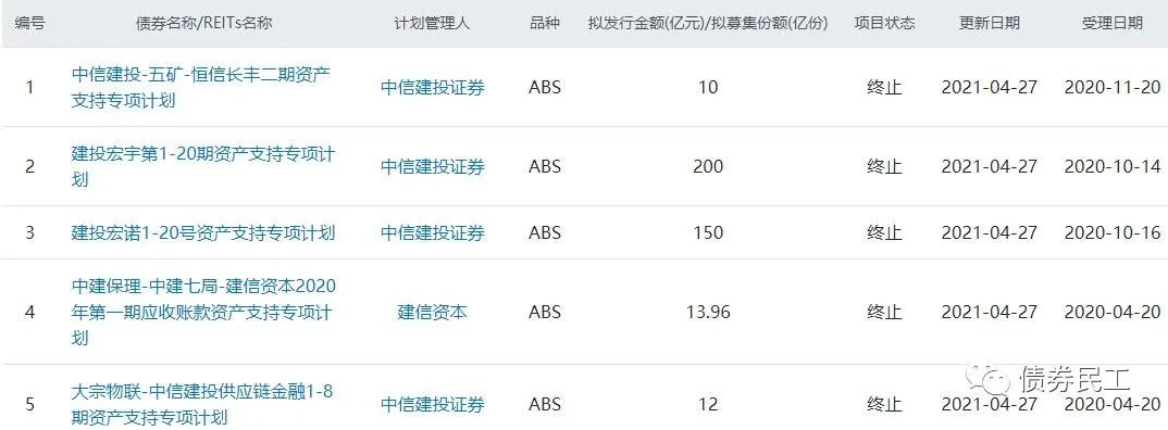 就在一周前,上海證券交易所于2021年4月20日終止了5只ABS產(chǎn)品的審核,合計擬發(fā)行金額為162.24億元。