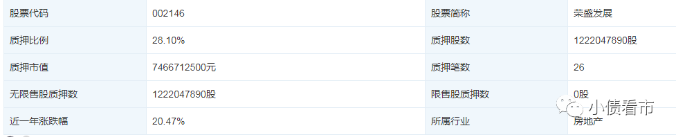 可見,榮盛發展主要股東質押公司股份比例較高,若股價下行可能面臨被平倉風險。