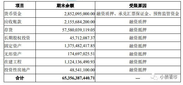 另外,榮盛發展受限資產規模較大,截至2020年末該指標為653.56億,是凈資產的1.1倍,其中主要為用于融資抵質押的受限存貨,不利于資產流動。