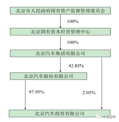 從股權(quán)結(jié)構(gòu)看,北汽投資的控股股東為北汽股份(1958.HK),持股比例為97.95%,公司實(shí)際控制人為北京市國資委。