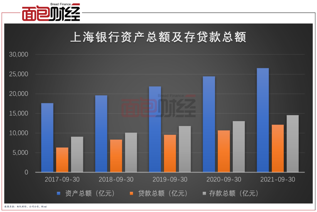 截至2021年9月末,上海銀行資產(chǎn)總額達2.65萬億元,較上年末增長7.71%。其中貸款規(guī)模的增長是資產(chǎn)規(guī)模增長的主要原因。
