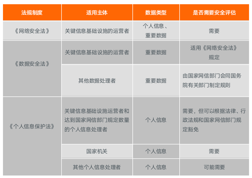 其中,網絡運營者主要指關鍵信息基礎設施的運營者和其他數據處理者。然而,從《網絡安全法》到《數據安全法》和《個人信息保護法》,都只對關鍵信息基礎設施的運營者做出了明確的個人數據或重要數據安全評估需求,而對于其他數據處理者的數據出境安全評估并未明確規定。