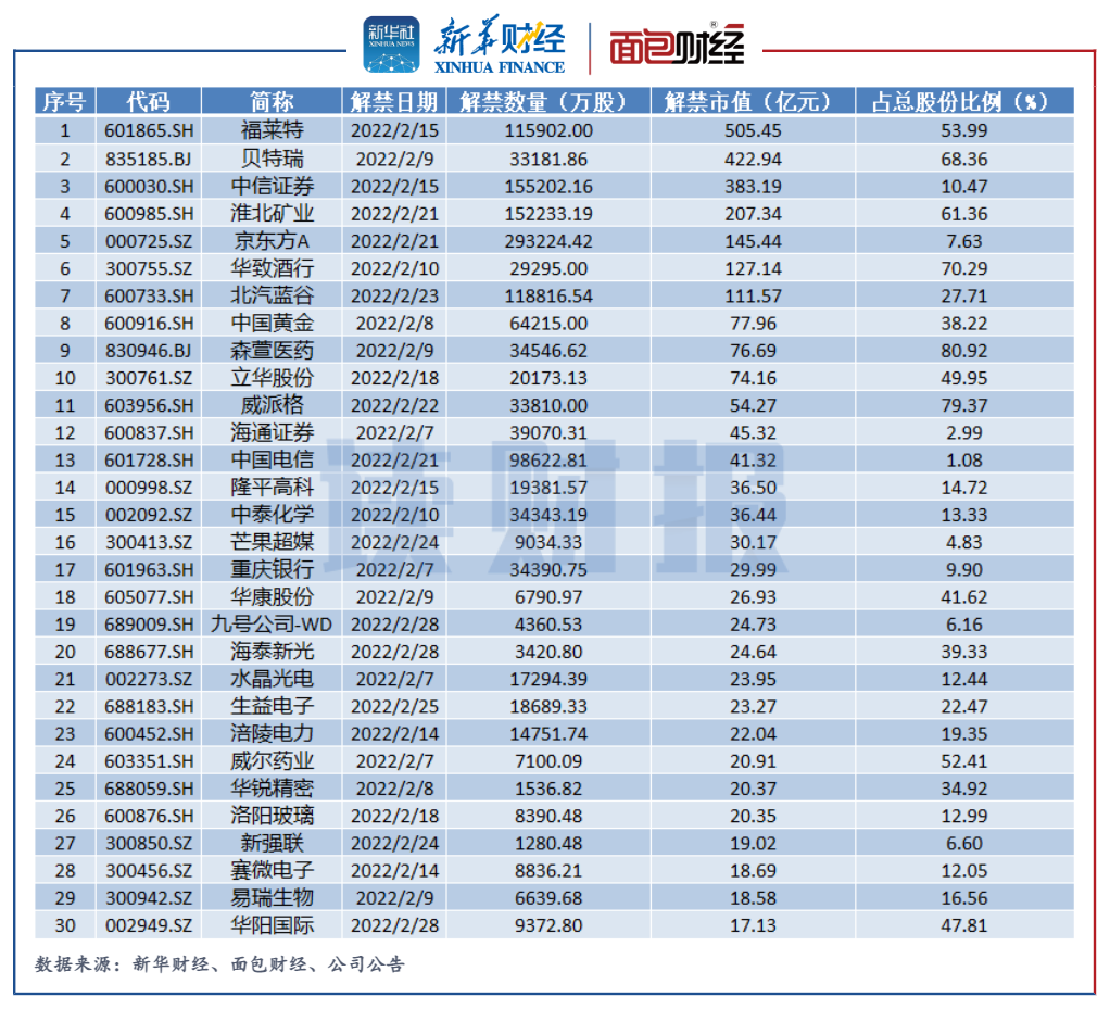 數(shù)據(jù)顯示,2月滬深兩市共計188家限售股解禁。