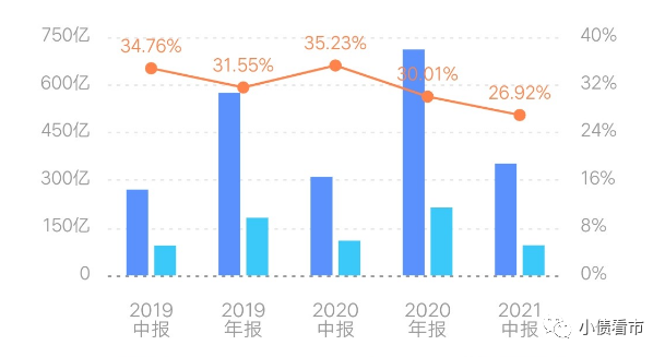 近年來,受結(jié)轉(zhuǎn)項目區(qū)域分布影響,龍光集團整體營業(yè)毛利率呈下行趨勢,2021年中期降至26.92%,但得益于良好的項目布局,整體保持在較高水平。