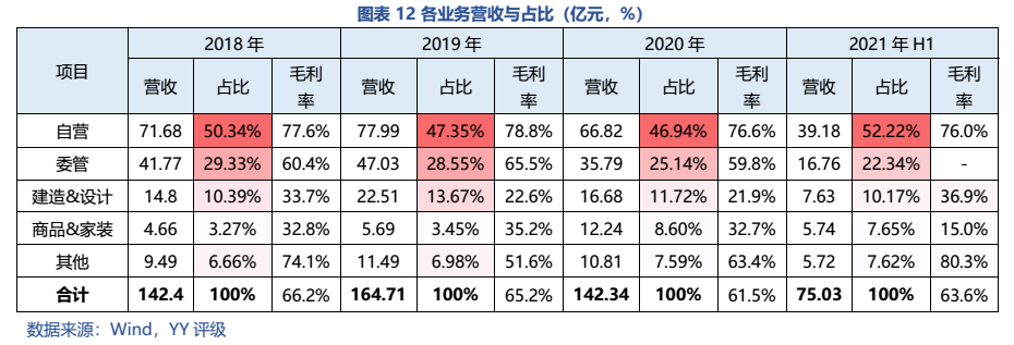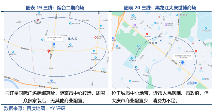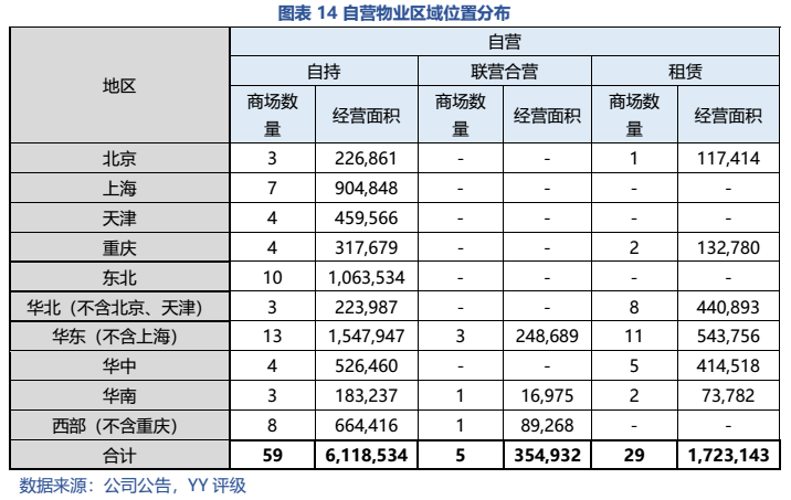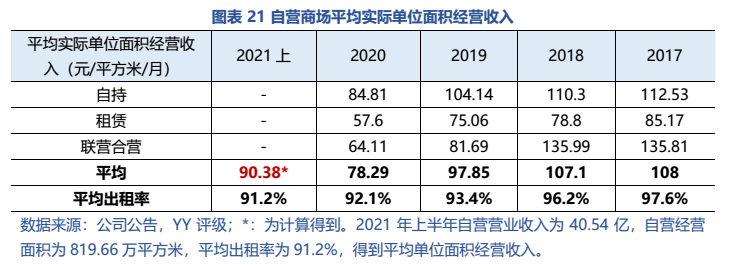 從經(jīng)營表現(xiàn)來看:1)自營業(yè)務(wù)收入穩(wěn)定,自持商場分布于一二線核心城市,但整體來說,坪效走向下坡,回報率逐年下降。2)委管業(yè)務(wù)資金占用小,有一定的利潤貢獻(xiàn),但未挑起大梁,且被質(zhì)疑“假委管”,存在表外負(fù)債及隱性經(jīng)營兜底的風(fēng)險;3)公司預(yù)打造新增長點——零售及家裝業(yè)務(wù),但尚處于發(fā)展期,當(dāng)前利潤貢獻(xiàn)仍十分有限,且還需持續(xù)投入資金。