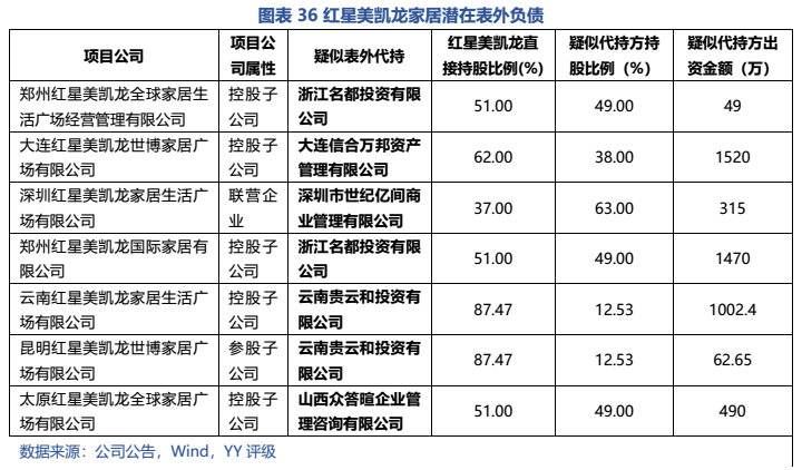 除了債務(wù)壓力以外,公司在建及擬建家居商場未來尚需投資75億元以上,節(jié)奏尚可調(diào)控,但若仍有表外資產(chǎn)的回購(如20年11月受讓的柳州紅星美凱龍家居有限公司),則本質(zhì)為表外債務(wù)的償還,也具有較強支出剛性。現(xiàn)金流仍然承壓