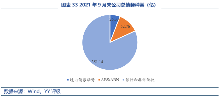 財務(wù)層面而言:截至21年9月末短債規(guī)模172.3億元,而同期現(xiàn)金及現(xiàn)金等價物僅57.3億元。償債來源方面:①經(jīng)營獲現(xiàn)能力相對穩(wěn)定,按照21年前三季度水平,未來一年預(yù)計有50-60億元凈流入。②資產(chǎn)處置方面,2021年前三季度賣出物流子公司(約按賬面價值打9折)、贖回理財產(chǎn)品,投資活動流入81.68億元緩解了部分資金壓力。③再融資方面,銀行借款有抵押物支撐,預(yù)計短期內(nèi)得以延續(xù)(但不排除在商場經(jīng)營效益下滑趨勢下銀行拒絕滾續(xù)或要求新增抵押的可能),但到期的債券(1年內(nèi)約20億元,不含有抵押的ABS)若需以銀行借款接續(xù),難度較大,因為當(dāng)前投資性房地產(chǎn)受限比例已經(jīng)達(dá)到87%。