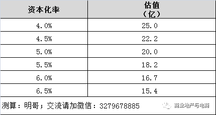 資本化率取值是估值的關鍵參數:資本化率越低,商業地產估值越高。